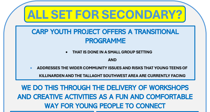 CARP Youth Programme are now taking referrals for their 6th Class Transition Project. Please see the attached flyers for more information. If you have any […]