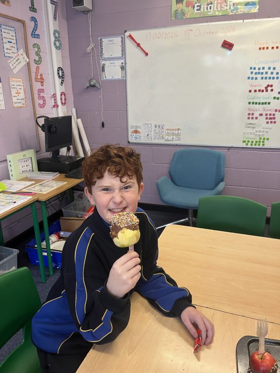 Ms. Quirke’s groups made chocolate apples for a Halloween treat to mark all of the hard work, manners, effort and respect since September.