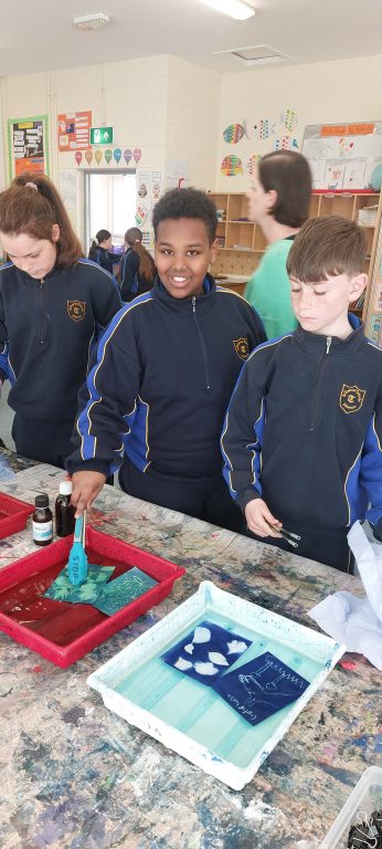 We had a lovely lesson with Jane the local artist. She taught us how to make photograph prints the old fashioned way using chemicals and water. We had to place our prints under a blanket at first, then the prints were exposed to sunlight to help them develop. They turned out really well