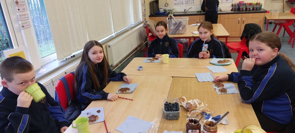 We’ve had lots of fun activities lately. We put delicious toppings on our pancakes, Anna made us hot chocolate and we enjoyed watching all the amazing talent in the hall. Well done to the girls from room 26 who got golden tickets